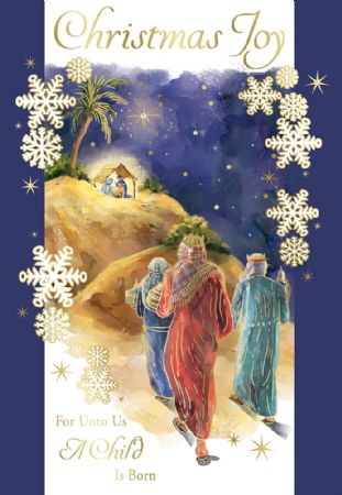 Quality pack of 12 Silverline wholesale Christmas cards of 2 foiled religious designs, with full colour inside and colour co-ordinating envelopes.