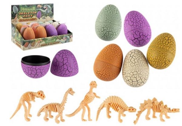 These fun, mini dinosaur eggs contain a mini dinosaur skeleton figure. Egg size approximately 7cm. 6 assorted designs, 12 in a display box.