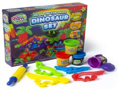 Single wrapped dinosaur glow in the dark dough set. Suitable for ages 3+.