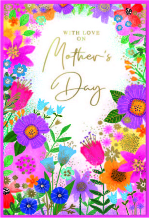 Quality pack of 6 wholesale Mothers Day cards from Simon Elvin of the same foiled design, with full colour inside and colour co-ordinating envelopes.