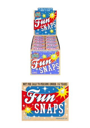 Display box of 50 Packs of 50 fun snaps. Throw them! Step on them or drop them. Buy in bulk for a reducd price.