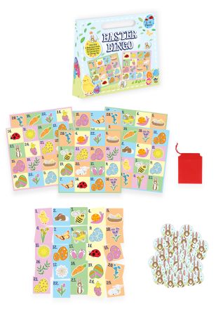 This Easter bingo game includes 6 bingo game cards, 25 call out cards, 72 card markers and 1 storage bag. Suitable for 2-6 players.