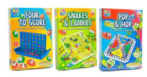 Our wrapped family games include a classic Four in a Row family line up game, Pop and Hop, a crazy colourful game of chasing fun and Trumpet Trunks, a fun game for all the family where players blow their trunk to flip the cards!